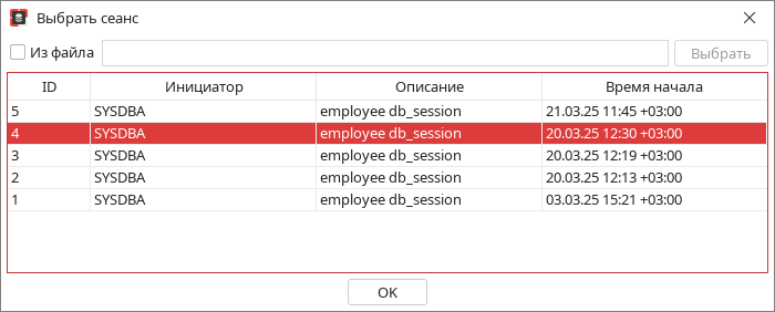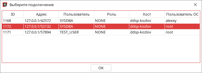 2. Нажмите на кнопку Выбрать и в открывшемся окне выберите пользовательское соединение, которое необходимо профилировать: